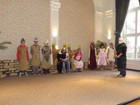 Vom 11.11.14 bis zum 14.11.14 führten die Sechsklässler ihre Projekttage zum Thema Mittelalter durch. Theoretischen Wissen wurde in der Mappenzeit zusammengetragen, das erarbeitete Wissen dann versucht, in die Praxis umzusetzen. So lebte für die am Freitag stattfindende Präsentation, das Rittertum wieder auf. Es wurden wehrhafte Burgmauern, Schilde, Helme aus Pappe gebaut und alt Schriftzeichen gemalt. Die Theatergruppe inszenierte das Leben auf einer Burg mit Spiel und Tanz.