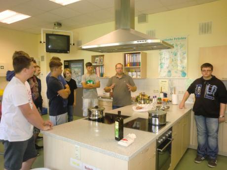 Schon zum dritten Mal wurde das Projekt unter Leitung von Herrn Wiesenberg durchgeführt. Die „Männer“ der 9. Klassen durften kochen. Zu Gast auch in diesem Jahr der ortsansässige Fleischer Kurt Wohlfahrt. Er unterstützte das Projekt großzügig mit Produkten aus seiner Produktion. Er erklärte den Schülern die Fleischsorten und deren Verarbeitung. Gekocht wurde Soljanka, gebraten Steaks vom Schwein und Rind sowie seine prämierten Bratwürste, mit denen er in Frankreich Deutscher Meister geworden ist. Auch konnten sie in diesem Jahr unseren Schulleiter Herrn Giebe begrüßen. Danke an Herrn Wohlfahrt.