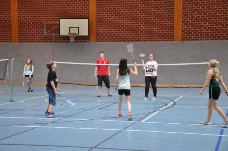 Am 16.7.2014 fand ein Turnier im Badminton (Doppel), Modus „JEDER GEGEN JEDEN“ statt. Kurzfristige organisatorische Veränderungen hatten zur Folge, dass ausschließlich Badminton gespielt wurde und nicht auch noch Tischtennis. Doch diese Änderung brachte die Wettkampfleitung nicht ins Trudeln. Kurzerhand wurde umdisponiert und ein Mixed-Turnier gespielt. Die 7a spielte in 8 und die 7b in 10 Doppeln gegeneinander.