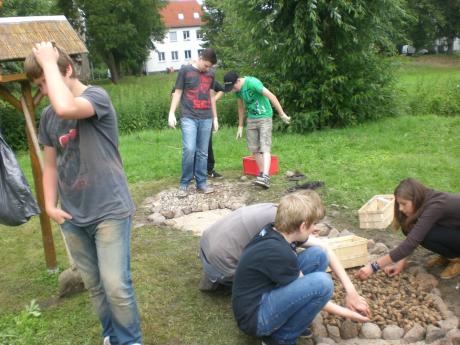 Im grünen Klassenzimmer erneuerten Schüler der Klassen 7a und 7b den Fußfühlpfad. In der Blumenrabatte und am Weidenzaun leuchten nun Geranien, interessante Tier - Steckbriefe zieren die Info - Tafel und es gibt wieder ein zweites Vogelhaus. Damit lädt dieser Lernort wieder Einheimische und Gäste der Stadt zum Verweilen ein. Herzlichen Dank den Schülern für ihren Einsatz, den Eltern, der Gärtnerei Panse und Herrn Lutz Hübner für ihre Unterstützung.