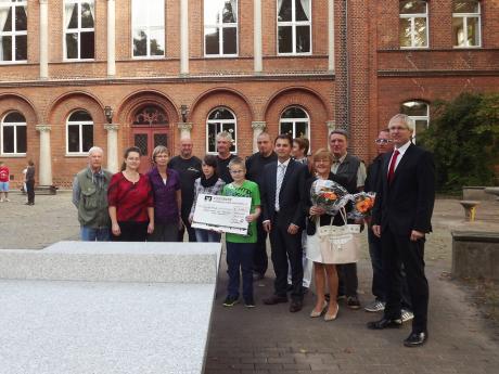 Schon seit dem letzten Schuljahr bestand der Wunsch, eine weitere Tischtennisplatte auf dem Schulhof einzurichten. Aber so einfach war das nicht umzusetzen, denn es sollte etwas Bleibendes werden, was bekanntlich viel Geld kostet. Hilfe kam zunächst von den Eltern, besonders von Frau Bischewski, die regionale Firmen und Institutionen ansprachen, die sich wiederum bereiterklärten, den Wunsch Realität werden zu lassen. Die 5. und 6. Klassen bedankten sich mit einem kleinen Programm bei allen Sponsoren und im Anschluss wurde die neue Tischtennisplatte feierlich übergeben.