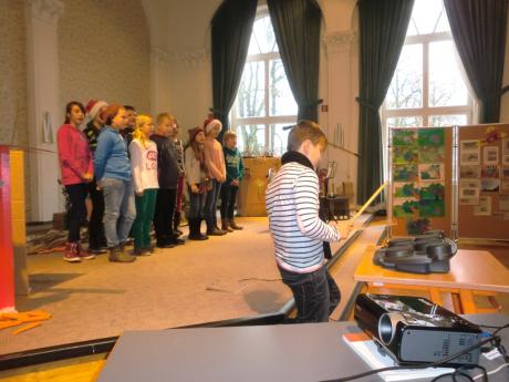 Wie angekündigt, hatten die 5. Klassen der Gemeinschaftsschule heute ihren großen Tag. In der Aula unserer Schule präsentierten sie die Ergebnisse der Projektwoche. Und das vor einer großen Zahl von Zuschauern. Eltern, Großeltern, Geschwister, andere Verwandte, Bekannte und unterrichtende Lehrer konnten begrüßt werden.
