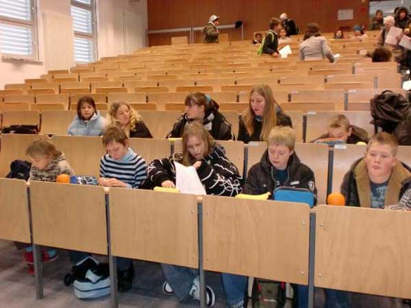 Am 22.01.10 besuchte die Klase 6a die Kinderuni der Hachschule Magdeburg-Stendal. Nach einer kurzen Einführung im Audimax mit einer Vorlesung zum Thema "Tanzen und wie tanzen die Menschen auf der Welt" ging es in die einzelnen Seminarworkshops.