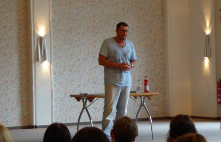 Am Montag erlebten die Schülerinnen und Schüler der 7. bis 9. Klassen der Gemeinschaftsschule J. J. Winckelmann Suchtprävention einmal anders. Anders deswegen, weil der Ex – Junkie Wolfgang Kiehl aus Niedersachsen, jetziger Suchtberater, eigene Erfahrungen im Umgang mit Drogen vermittelte. Dabei hinterließ er nach der zweistündigen Veranstaltung nachdenkliche und beeindruckte Schülerinnen und Schüler, die anschließend das Gespräch mit Wolfgang Kiehl suchten.