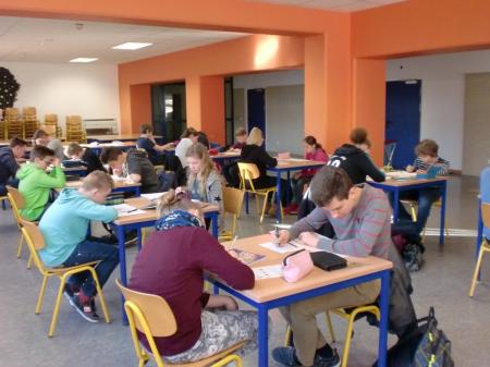 Zum 11. Mal nahm unsere Schule am Känguru-Wettbewerb der Mathematik teil. Am 17.03. trafen sich 34 Schülerinnen und Schüler der Klassen 5 - 9, um sich dieser Herausforderung zu stellen. 75 Minuten knobelten sie sehr ausdauernd. Wir sind gespannt, welcher Schüler/welche Schülerin den weitesten Kängurusprung (die meisten aufeinanderfolgenden Aufgaben richtig löste) bewältigt hat und das T-Shirt gewinnt.