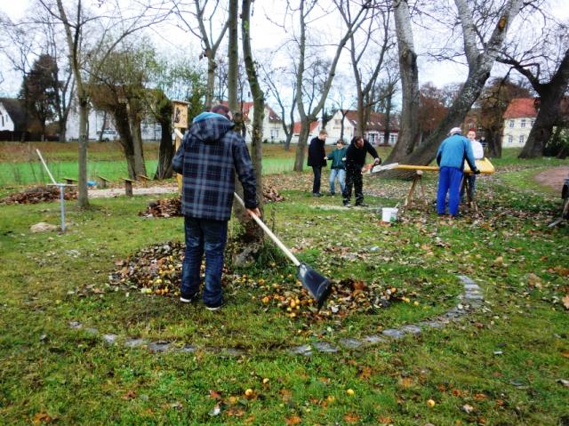 Richtig was los war wieder im grünen Klassenzimmer. Die Schüler harkten Laub, beseitigten Unrat und schmückten den Eingang mit Tannengrün und weihnachtlichen Motiven, die die Gruppe "Natur" mit Frau Schattat und Frau Runge gebastelt hatten. Mit Hilfe von Herrn Näbsch, Herrn Homann, Herrn Hübner und herrn Tietze wurden ein Vogelhaus, die "Erbauertafel" und ein Schild für Hundebesitzer einbetoniert. Kräftige Unterstützung erhielt die Arbeitsgemeinschaft auch von der Gruppe "Regionalgeschichte" und Schülern der 8. Klassen unter Leitung von Herrn und Frau Wiesenberg. Ein Dank an alle Beteiligten - vor allem den fleißigen Schülern - , dem Edeka-Markt für das Vogelfutter und der Holzwerkstatt Krüden für die angefertigten Schilder.