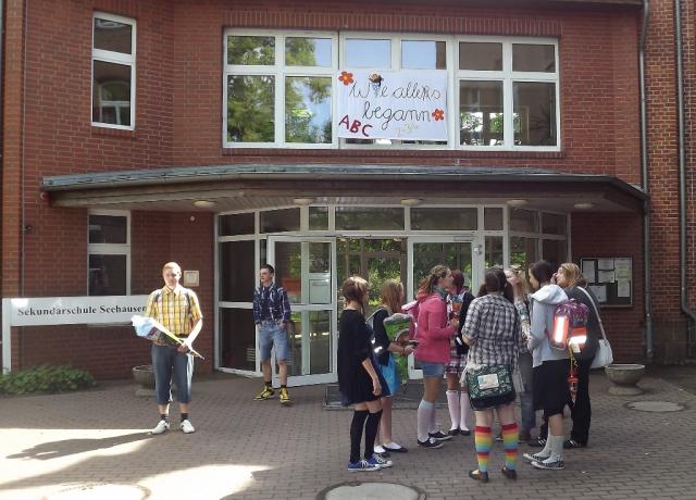 Schon traditionell wurden am 27.06.12 die zukünftigen Schülerinnen und Schüler der 5. Klassen in einer Feierstunde an ihrer neuen Schule willkommen geheißen. Das Programm gestalteten die Schülerinnen und Schüler der jetzigen 5. Klassen unter der Leitung von Frau Fehlandt, welches begeistert aufgenommen wurde und einen kleinen Einblick in die Arbeit an unserer Schule gewährte. Außerdem zeigte die Taekwon-Do-Gruppe unter Leitung ihres Trainers Helmut Krah ihr Können und auch unsere Hard-Style-Gruppe präsentierte sich. Im Anschluss begrüßten unser Schulleiter, unsere stellvertretende Schulleiterin und die Klassenleiter die „Neuen“.