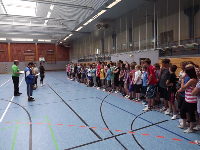 Am 09.07.2012 war es wieder soweit, unser Sportfest wurde im zweiten Anlauf durchgeführt. Der erste Versuch fiel dem Wetter zum Opfer. Die Schülerinnen und Schüler starteten im Leichtathletik-Dreikampf, die Mädchen Klasse 5 und 6 im Ball übers Netz und die Jungen im Fußball. Morgen gehen die Schülerinnen und Schüler der 7. bis 9. Klassen an den Start.