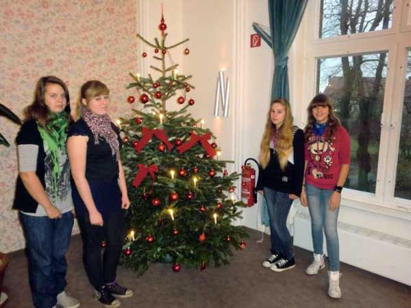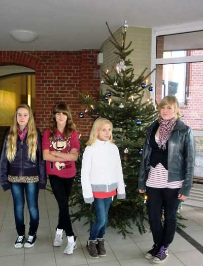 Jetzt steht in der Aula auch ein Weihnachtsbaum. Recht herzlichen Dank an die Sponsorin Frau Hollmann-Müller.