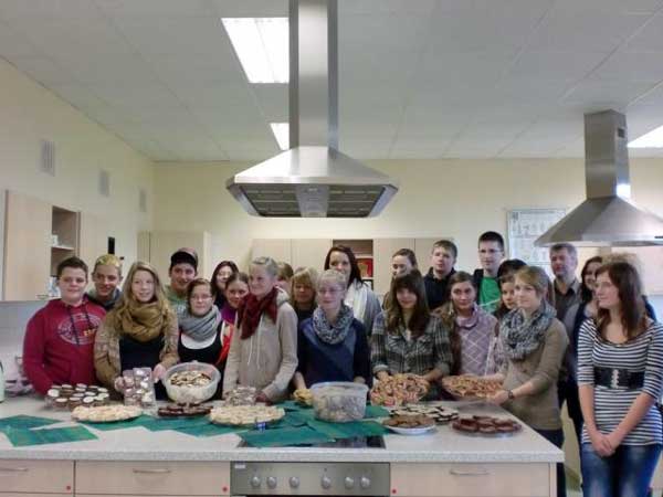 Traditionell wurde unter Federführung von Frau Müller und Frau Steinbach an unserer Schule zur Adventszeit ein Backwettbewerb durchgeführt. 23 Schülerinnen und Schüler der 8. bis 10. Klasse beteiligten sich. Eine Jury aus Elternvertretern und Vertretern des Fördervereins bewerteten die Ergebnisse. Den 1. Platz belegten Mareike Wittig, Angie Knitter und Kathleen Scholz aus der 10 b, den 2. Platz Paula Schulz, Gina Sieting und Cindy Taggesell aus der 8 a und den 3. Platz Marlene Windhoever, Laura Teichmann und Svenja Müller aus der 8 b. Anschließend wurden die Backwaren in der Kindertagesstätten der Stadt verteilt. Die Kinder waren begeistert.