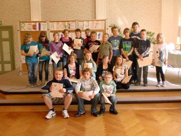 Traditionell fand auch in diesem Schuljahr der Rezitatorenwettstreit der 5. und 6. Klassen in der Aula der Sekundarschule statt. Wieder hatten sich Schülerinnen und Schüler Gedichte und Balladen zu den unterschiedlichsten Themen ausgesucht. Erstmals wurde auch ein Gedicht auf Platt vorgetragen. Musikeinlagen unterbrachen die Vorträge, bevor es zur Auswertung durch eine Jury aus Eltern, Schüler und Lehrern kam. Alle Teilnehmer bekamen riesigen Beifall durch ihre Klassenkameraden und Gäste. Während der Auswertung wurde den Gästen, vor allem Eltern, Kaffe und Kuchen gereicht - dank an die 9b um Klassenlehrerin M. Müller, die alles herrichteten. Sieger bei den 5. Klassen wurden Angelina Beck (5b), Jasmin Näbsch (5b), Marie Wille (5a) und Lena-Marie Sandvoß (5b). Bei den 6. Adrian Walter (6a), Mario Könning (6b) und Henning Musche (6b). Ein ganz besonderer Dank geht an die Hauptorganisatorin Frau Fehlandt.